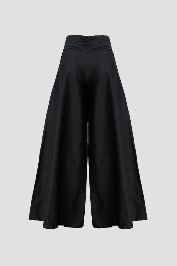 Made with cotton, this piece features a high waist flared boot-cut pants with a wide flap on the waist that can be knotted to a bow.