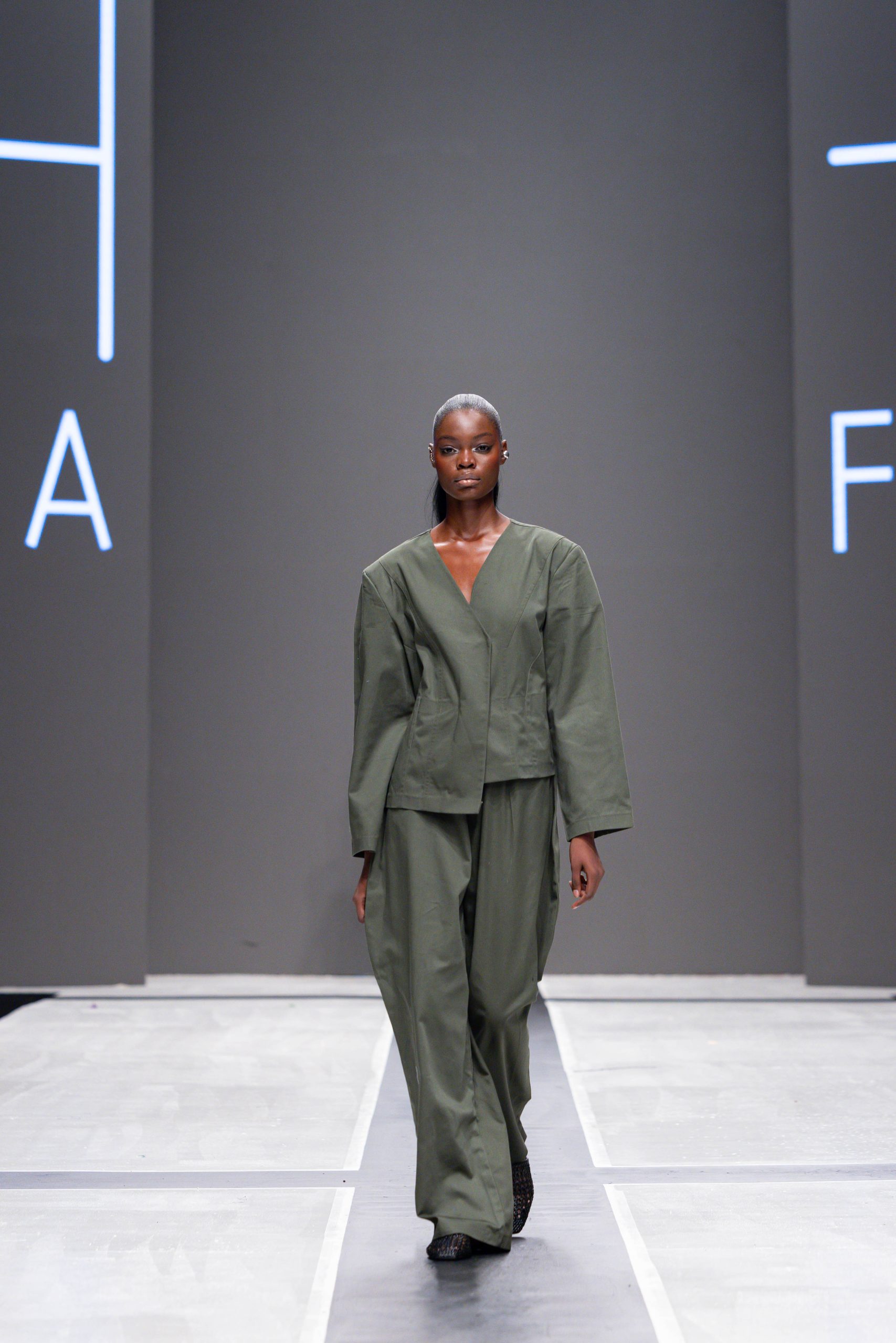 Made with cotton fabric, this jumpsuit features a blazer-cut upper body with a cocoon shaped bottom and long sleeves.