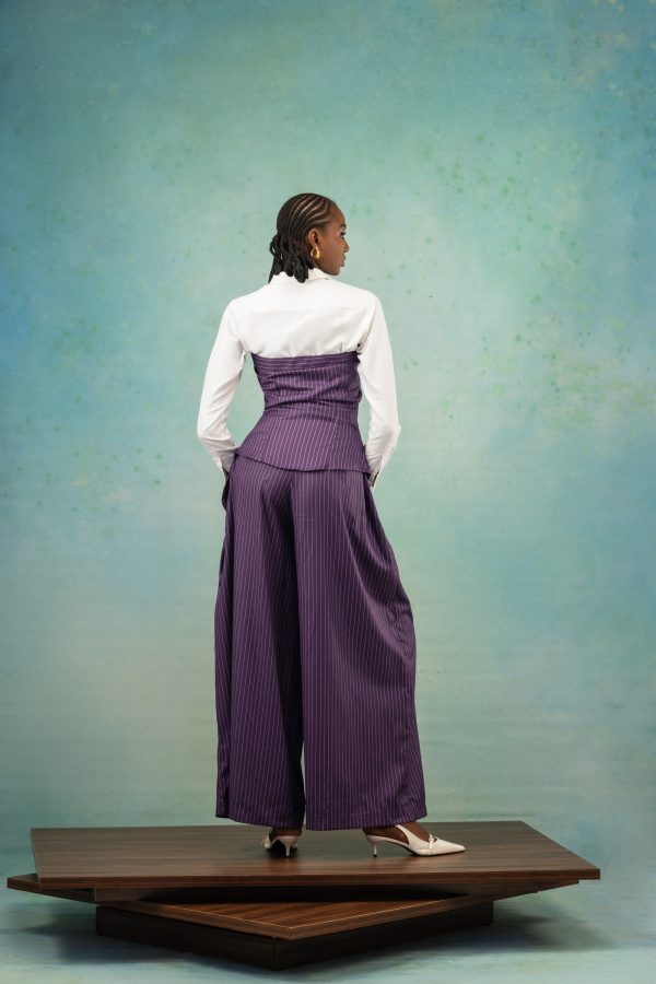 Made with cashmere wool, this piece features a high-waist, wide-leg pants with oversized flap pockets in front and inner back pockets