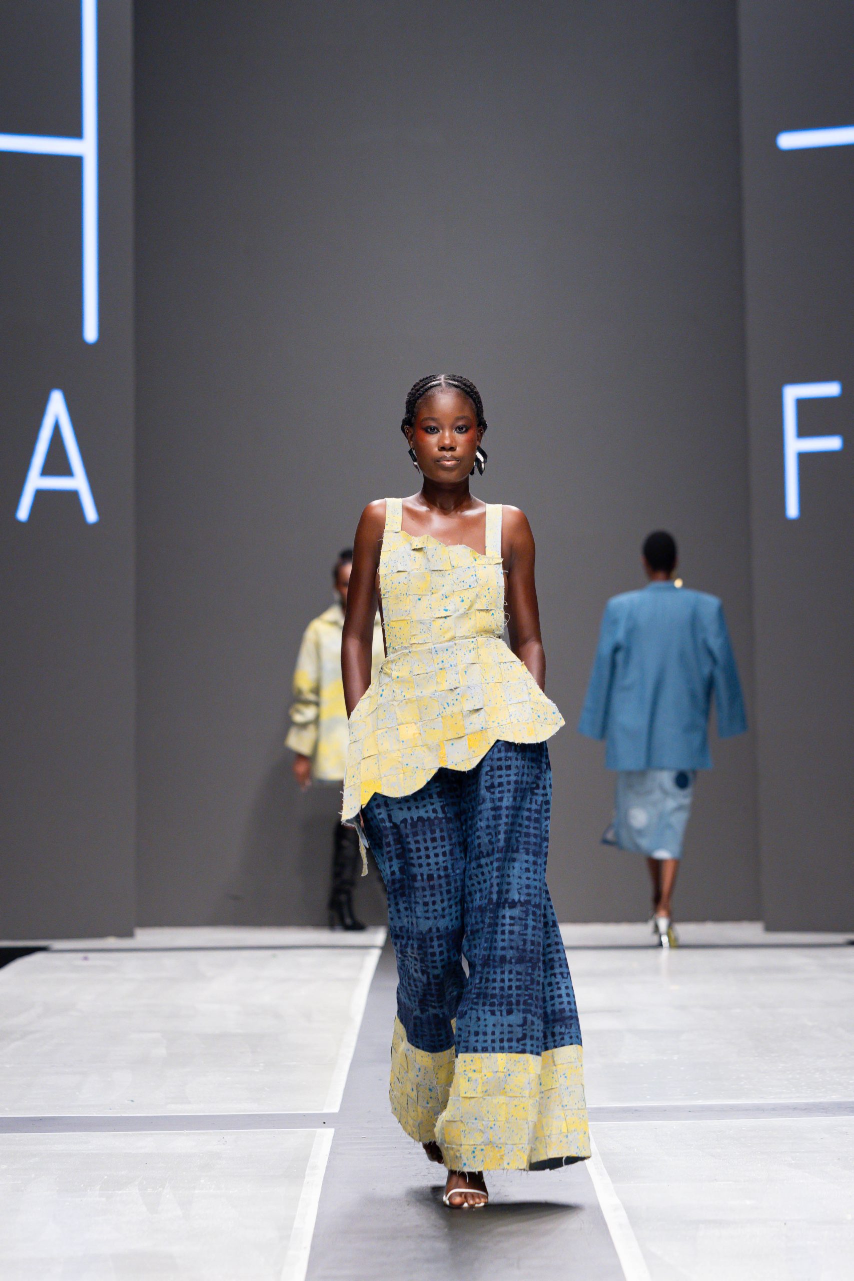 Made with customised denim fabric, this piece features a woven upper flap with a woven bottom flare. It can be styled with a T-shirt or a buttoned down shirt.