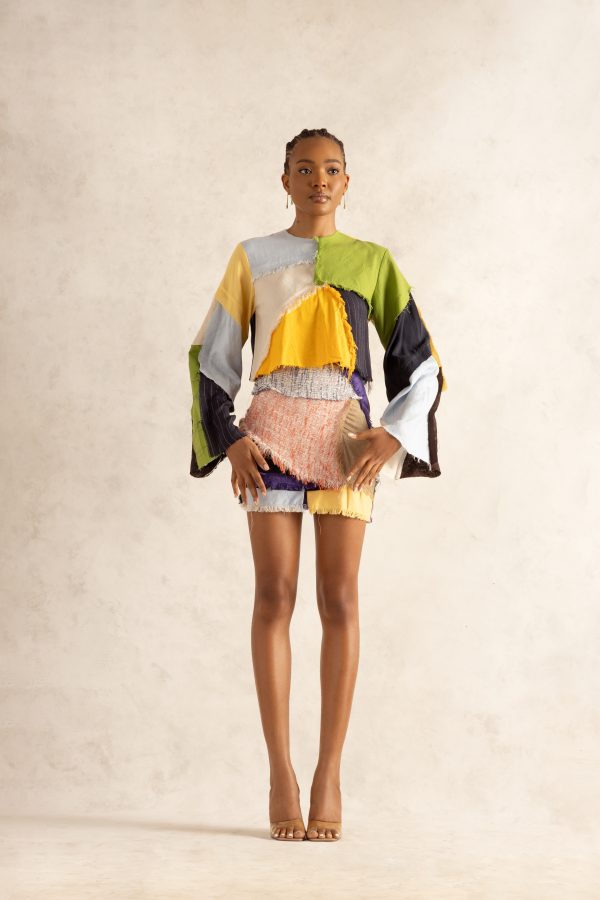 Made with cotton, this piece features an oversized buttoned shirt with a panel of denim patchwork. The shirt can be styled as desired.