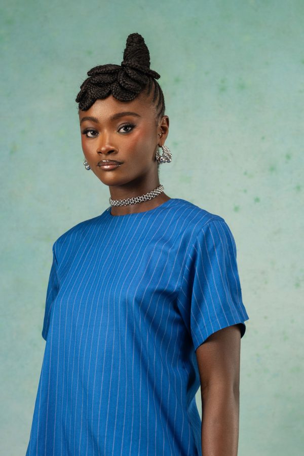 Made with cashmere wool, this piece features a relaxed, over-sized, round-neck tunic top with short sleeves, a zipper at the back and slit on one side of the top.